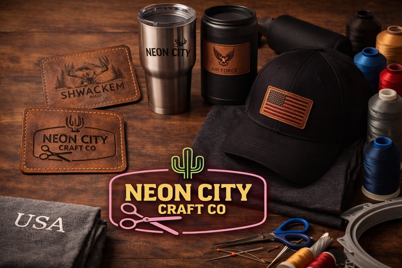 In addition to apparel, we specialize in laser engraving for hat patches, tumblers, and a wide range of items. If you can think it, we can engrave it. We also provide professional embroidery and digitizing services, allowing us to create clean, detailed embroidered designs on hats, clothing, bags, and more.
